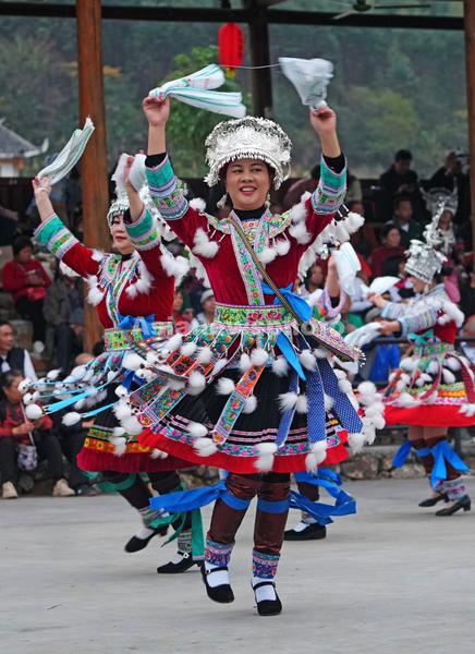 近日,广西柳州市融水苗族自治县梦呜苗寨景区开展苗年、打同年和苗族婚礼等苗族冬季民俗沉浸式展演活动,众多游客纷至沓来领略苗家风情,体验苗寨民俗,助推了景区冬季旅游热的兴起。