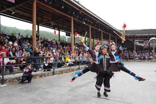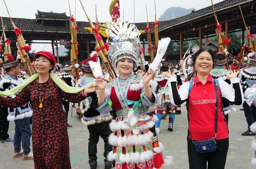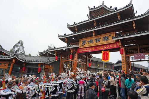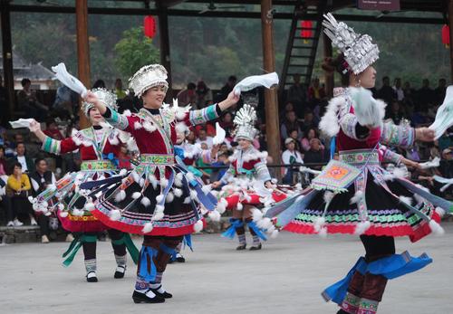 近日,广西柳州市融水苗族自治县梦呜苗寨景区开展苗年、打同年和苗族婚礼等苗族冬季民俗沉浸式展演活动,众多游客纷至沓来领略苗家风情,体验苗寨民俗,助推了景区冬季旅游热的兴起。