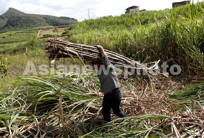 2023年12月15日,广西来宾市忻城县各地蔗农们砍收甘蔗,蔗糖企业开足马力促生产,助推乡村振兴。