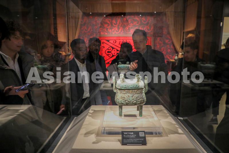 图片说明:2023年12月23日,在山东省滕州市博物馆,外国学生观看馆藏国家一级文物西周滕侯鼎。