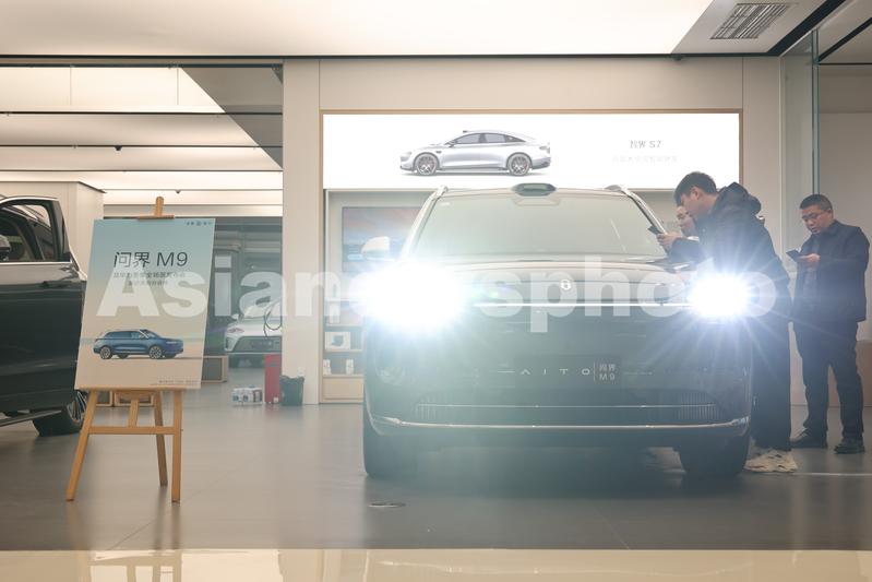 2023年12月26日,在位于重庆市沙坪坝区的龙湖金沙天街华为智能生活馆,市民选购问界M9。