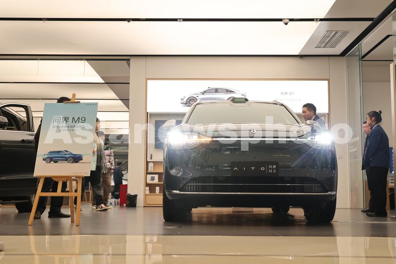 2023年12月26日,在位于重庆市沙坪坝区的龙湖金沙天街华为智能生活馆,市民选购问界M9。