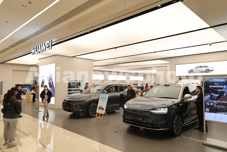 2023年12月26日,在位于重庆市沙坪坝区的龙湖金沙天街华为智能生活馆,市民选购问界M9。