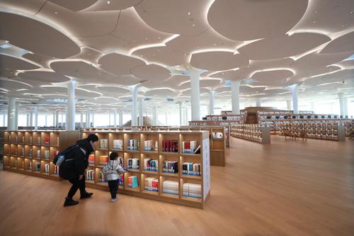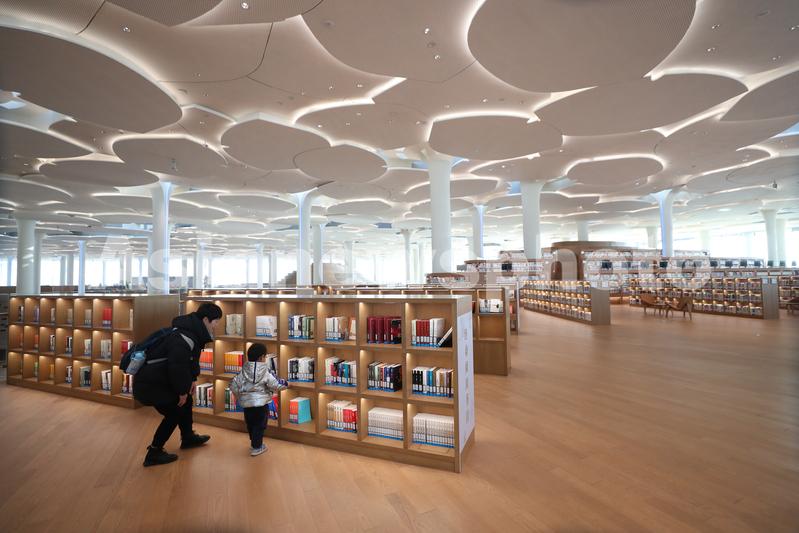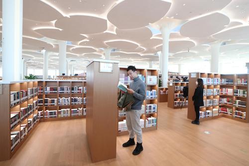 图片说明:市民在北京城市图书馆内挑选图书。