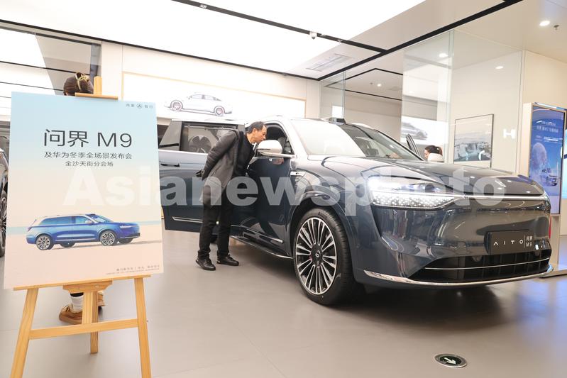 2023年12月26日,在位于重庆市沙坪坝区的龙湖金沙天街华为智能生活馆,市民选购问界M9。