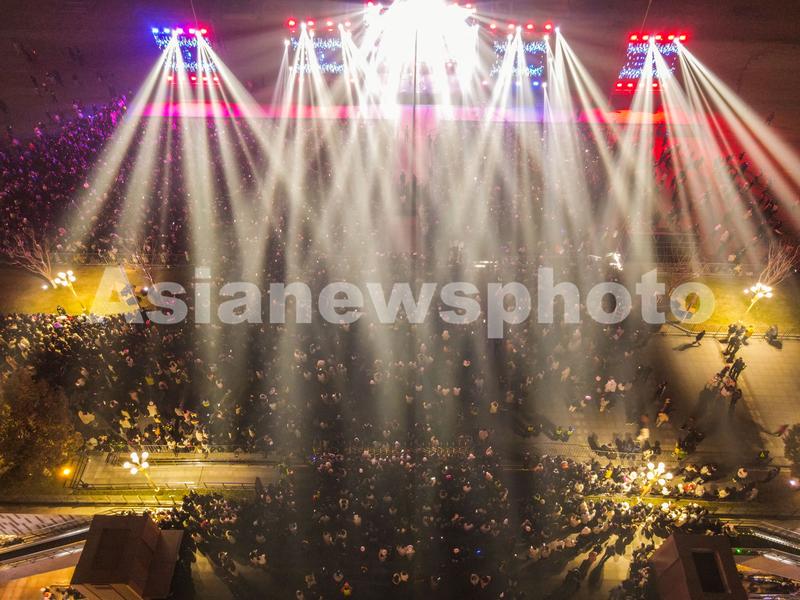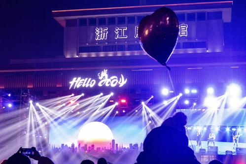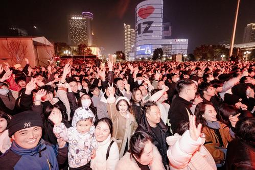 图片说明:2023年12月31日,杭州武林广场,众多市民共同迎接2024年的到来。