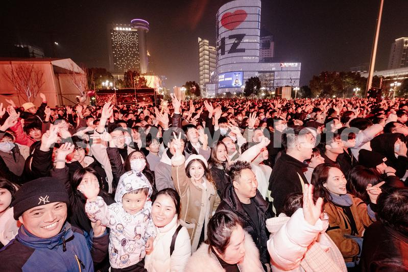 图片说明:2023年12月31日,杭州武林广场,众多市民共同迎接2024年的到来。