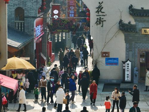 图片说明:2023年12月31日,安徽省芜湖市镜湖区芜湖古城游人如织,人们赏景、游玩、品美食,在休闲放松的旅行中迎接新年的到来,乐享假日美好时光。