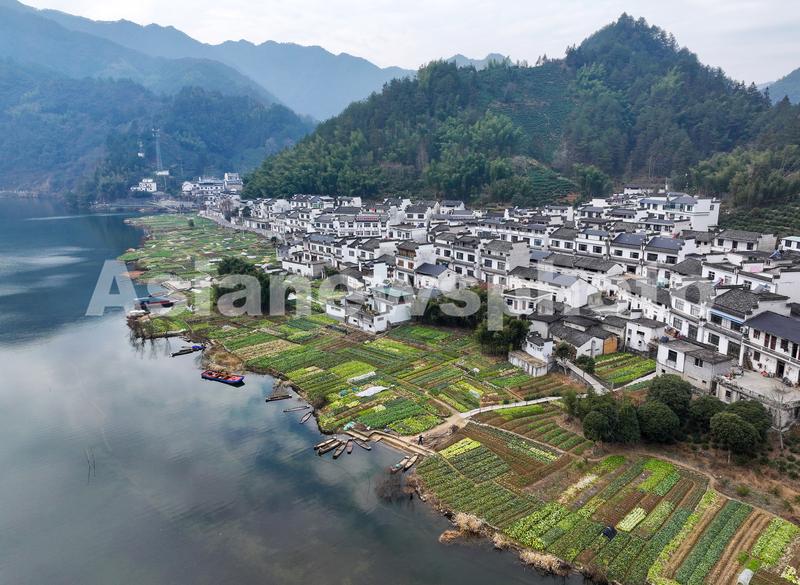 临近小寒节气,安徽省黄山市徽州区坑上村冬景如画,青山绿水环抱古村落,勾勒出一幅唯美的生态画卷。