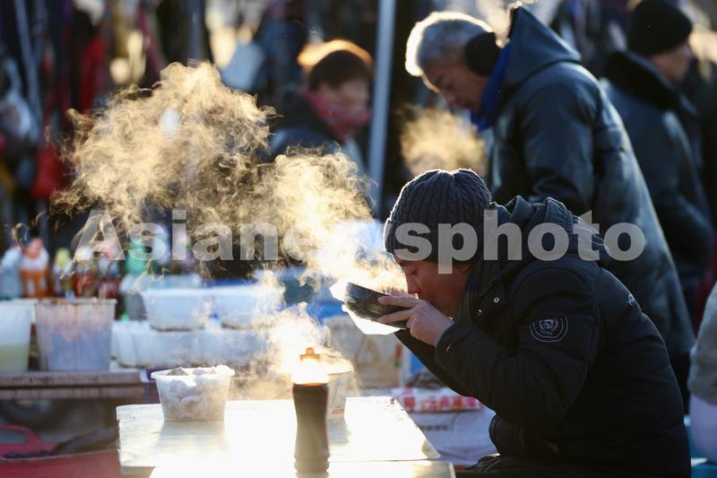 图片说明:市民在沙河大集上品尝美食。