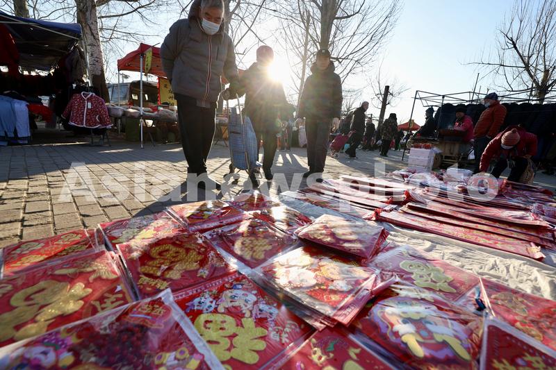图片说明:市民在沙河大集上购买年货。