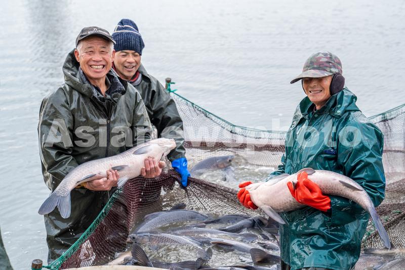 1月8日,浙江省湖州市长兴县太湖街道霞城村,草鱼、青鱼喜丰收,捕鱼现场一派繁忙景象。