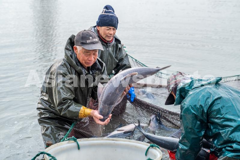2024年1月8日,浙江省湖州市长兴县太湖街道霞城村,草鱼、青鱼喜丰收,捕鱼现场一派繁忙景象。