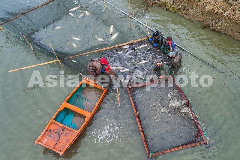 1月8日,浙江省湖州市长兴县太湖街道霞城村,草鱼、青鱼喜丰收,捕鱼现场一派繁忙景象。