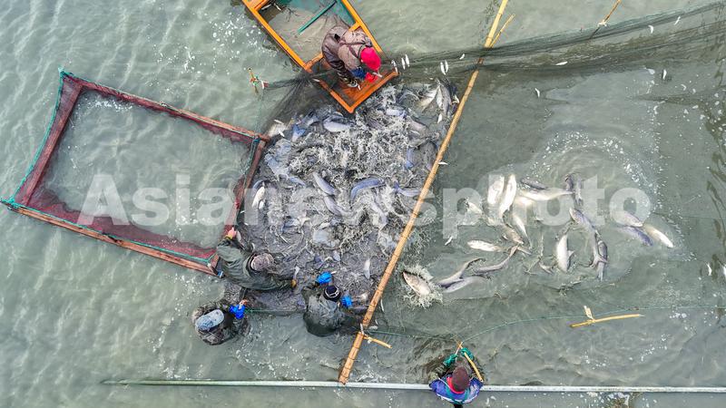 1月8日,浙江省湖州市长兴县太湖街道霞城村,草鱼、青鱼喜丰收,捕鱼现场一派繁忙景象。