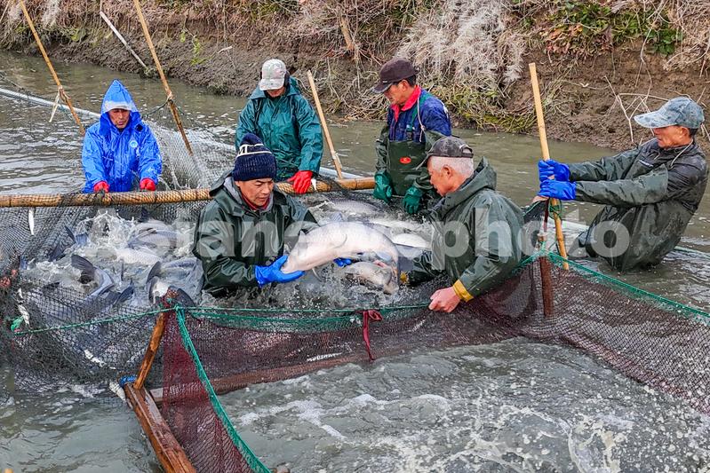 2024年1月8日,浙江省湖州市长兴县太湖街道霞城村,草鱼、青鱼喜丰收,捕鱼现场一派繁忙景象。