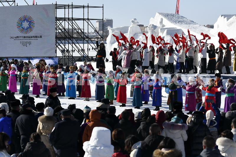 内蒙古四子王旗2024首届冰雪那达慕在乌兰花镇主会场开幕。