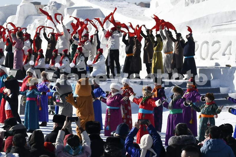 内蒙古四子王旗2024首届冰雪那达慕在乌兰花镇主会场开幕。