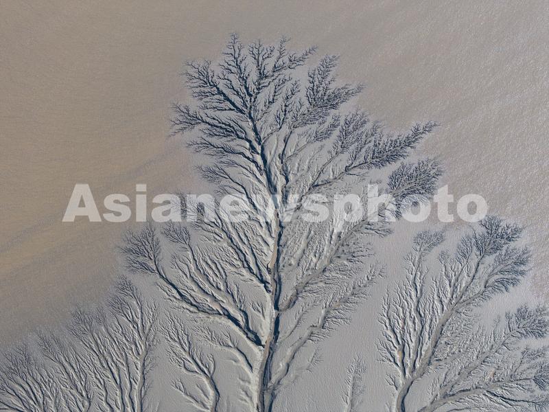 图片说明:2024年1月14日,浙江嘉兴海宁,钱塘江潮水退去后,滩涂上出现了一幅令人惊叹的“大地之树”景观。