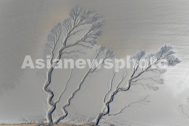 图片说明:2024年1月14日,浙江嘉兴海宁,钱塘江潮水退去后,滩涂上出现了一幅令人惊叹的“大地之树”景观。