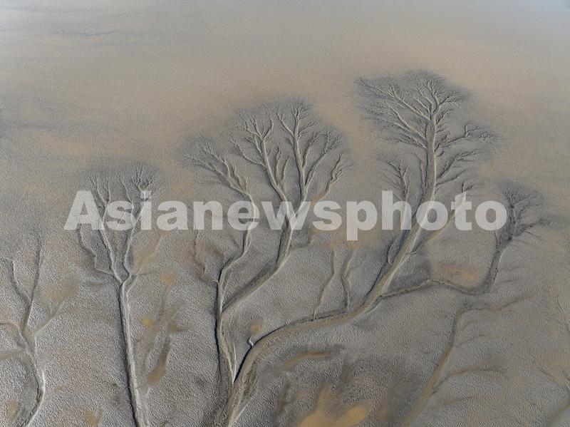 图片说明:2024年1月14日,浙江嘉兴海宁,钱塘江潮水退去后,滩涂上出现了一幅令人惊叹的“大地之树”景观。