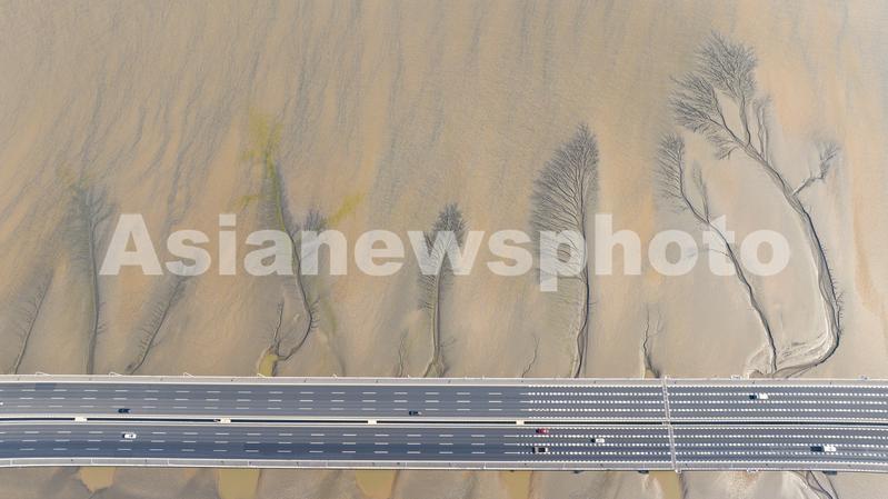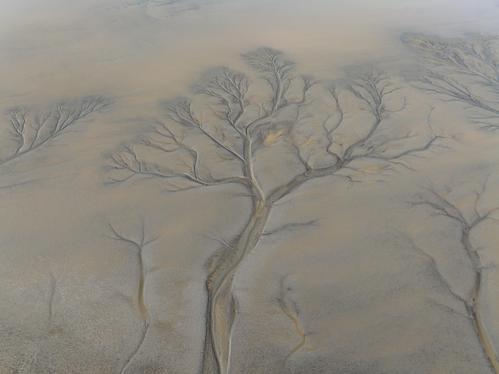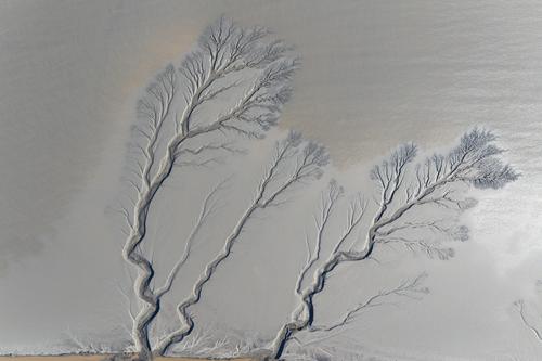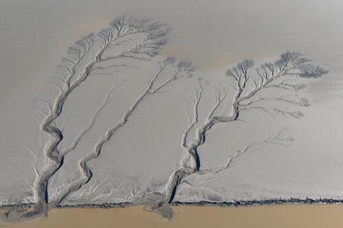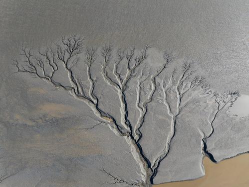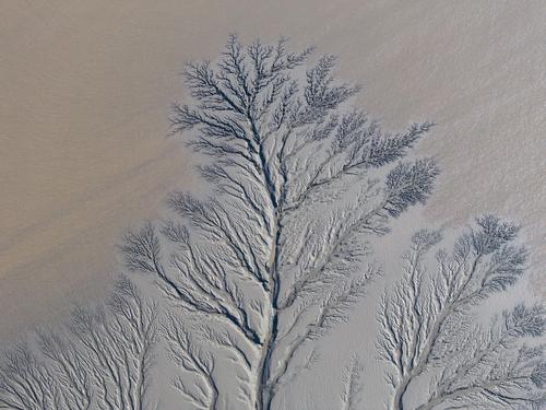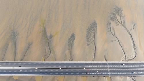 图片说明:2024年1月14日,浙江嘉兴海宁,钱塘江潮水退去后,滩涂上出现了一幅令人惊叹的“大地之树”景观。