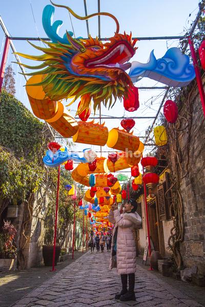 图片说明:2024年1月23日,游人在南京老门东景区赏灯游玩。