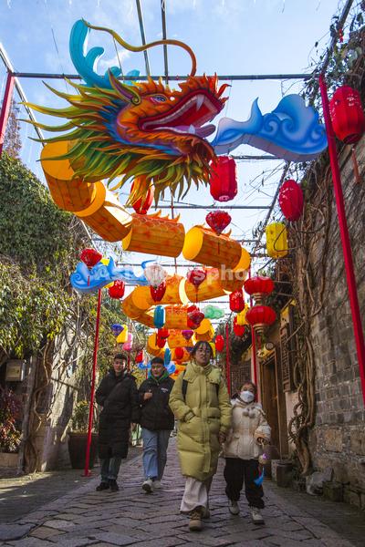 图片说明:2024年1月23日,游人在南京老门东景区赏灯游玩。