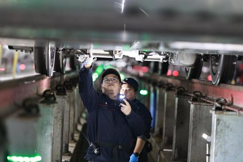 在中国铁路成都局集团有限公司重庆车辆段重庆西动车运用车间存车线,有这样一群坚守岗位的人,他们披星戴月、日夜兼程,登车顶、钻地沟、查设备、全力以赴守护春运安全。