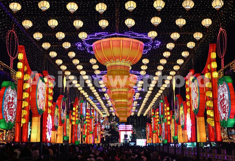 2024年1月31日晚,在四川省自贡市大安区的中华彩灯大世界景区,游客正在赏灯。