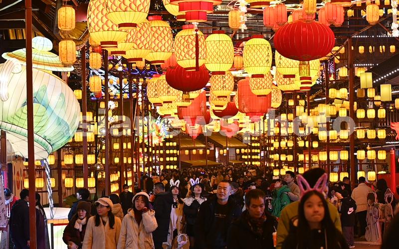 2024年1月31日晚,在四川省自贡市大安区的中华彩灯大世界景区,游客正在赏灯。