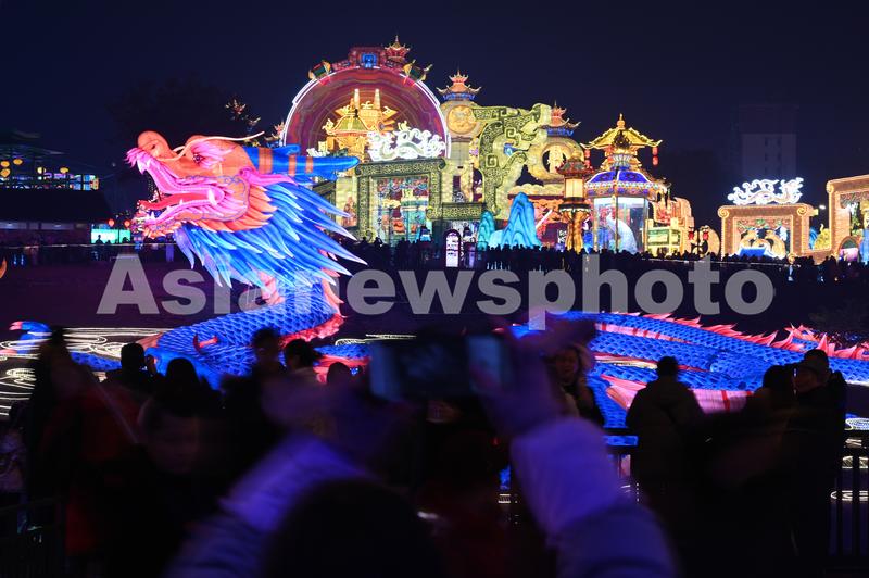 2024年1月31日晚,在四川省自贡市大安区的中华彩灯大世界景区,游客正在赏灯。