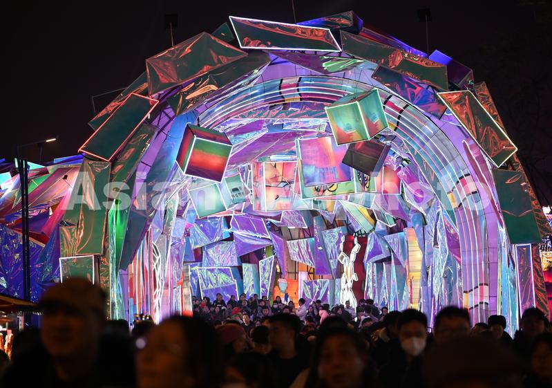 2024年1月31日晚,在四川省自贡市大安区的中华彩灯大世界景区,游客正在赏灯。
