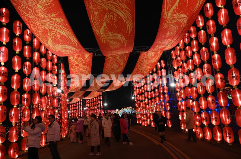 2024年1月31日晚,在四川省自贡市大安区的中华彩灯大世界景区,游客正在赏灯。