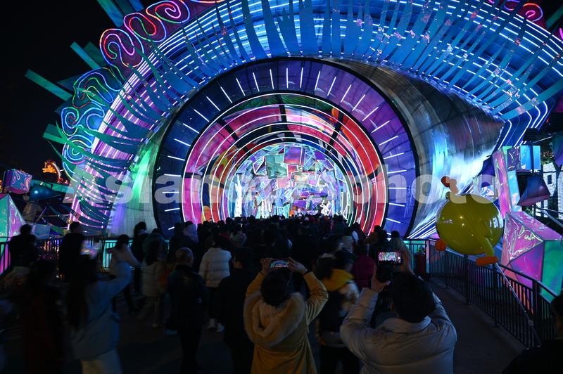 2024年1月31日晚,在四川省自贡市大安区的中华彩灯大世界景区,游客正在赏灯。