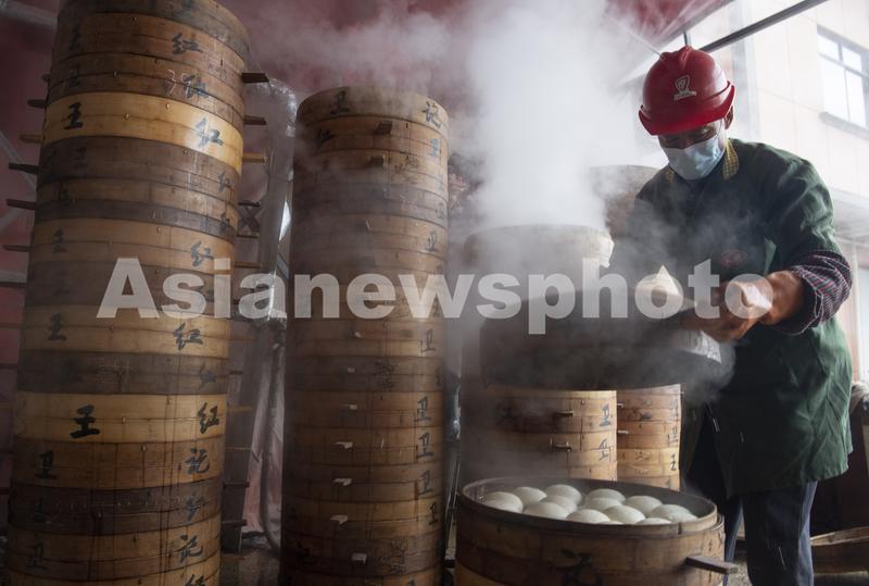 图片说明:2024年2月4日,浙江省金华市婺城区新狮街道下裴村一馒头店,一屉屉蒸笼漫出的腾腾热气。