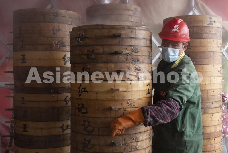 图片说明:2024年2月4日,浙江省金华市婺城区新狮街道下裴村一馒头店,一屉屉蒸笼漫出的腾腾热气。