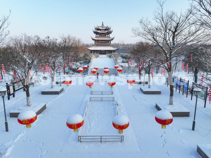 2024年2月5日,在江苏省连云港市赣榆区青口生态公园雪景。受冷空气影响,江苏省连云港市迎来降雪天气,雪景美如画卷。