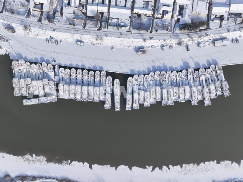 2024年2月5日,在江苏省连云港市赣榆区青口中心渔港雪景雪景。