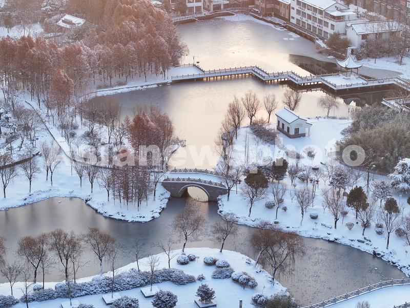 2024年2月5日,在江苏省连云港市赣榆区青口生态公园雪景。受冷空气影响,江苏省连云港市迎来降雪天气,雪景美如画卷。