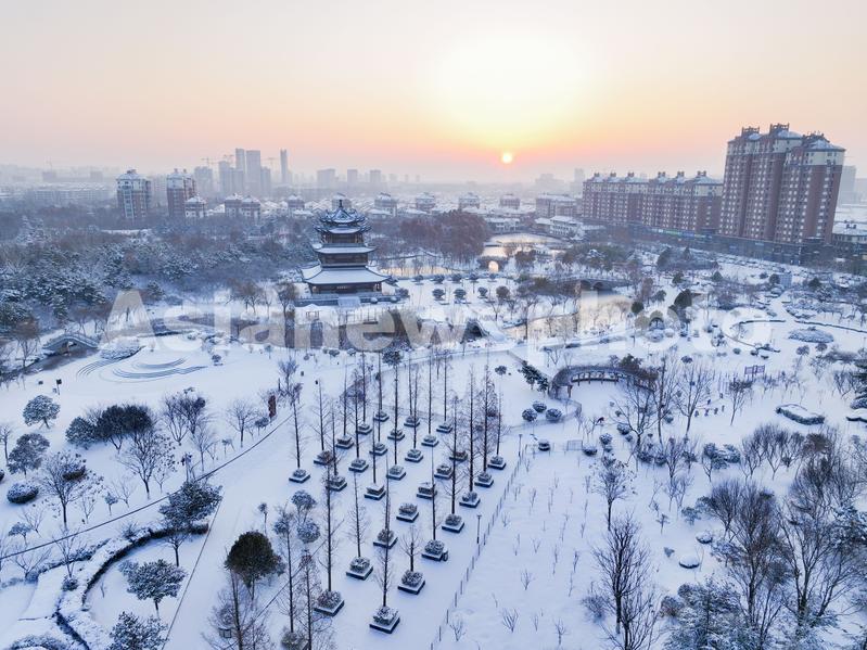 2024年2月5日,在江苏省连云港市赣榆区青口生态公园雪景。受冷空气影响,江苏省连云港市迎来降雪天气,雪景美如画卷。