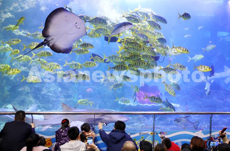 2024年2月12日,不少市民游客走进海洋馆、动物园等休闲场所放松心情,欢度假日。在青岛海底世界,丰富多彩的水下节目,引得市民纷纷前来打卡欣赏。