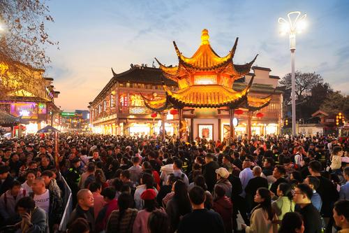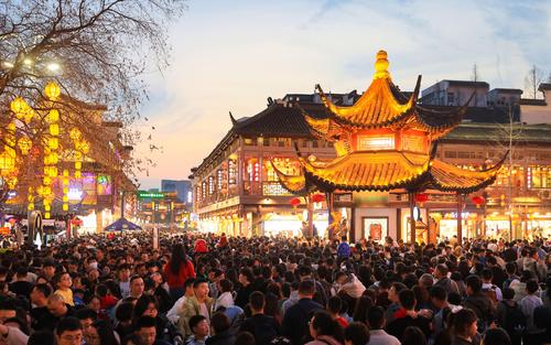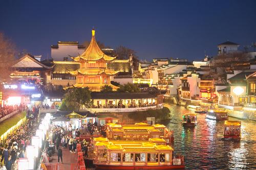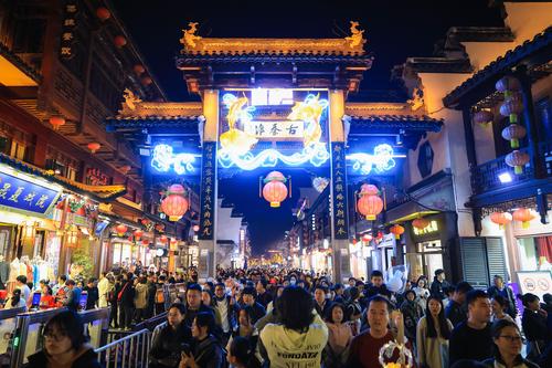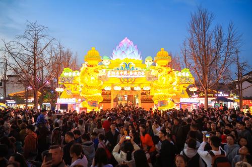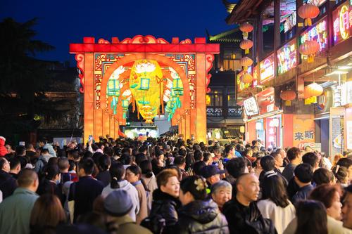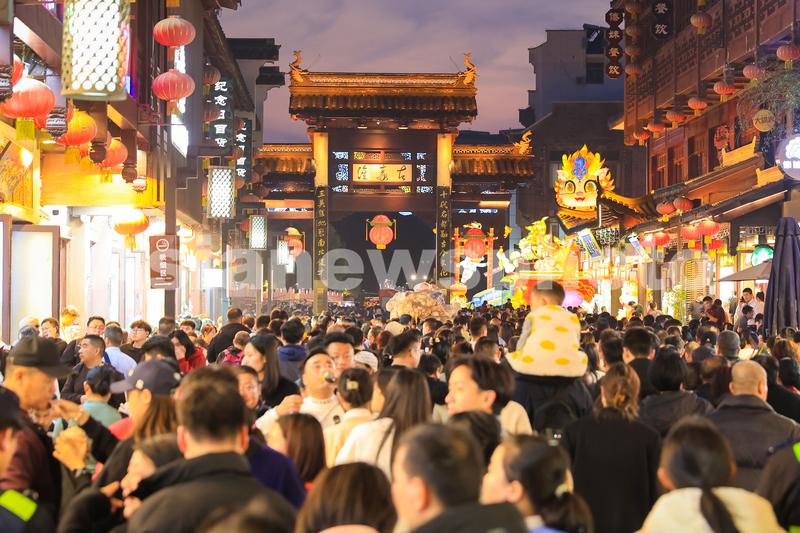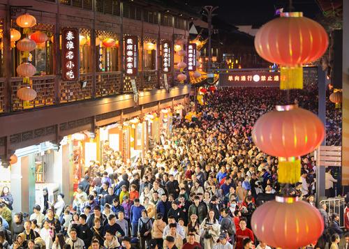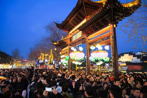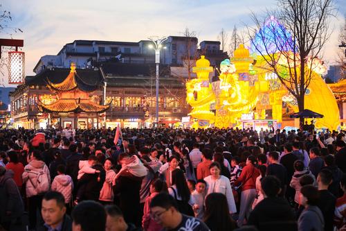 2024年2月14日,春节假期,南京秦淮灯会花灯璀璨,吸引众多市民和游客来到夫子庙景区观灯赏景,乐享假日时光。