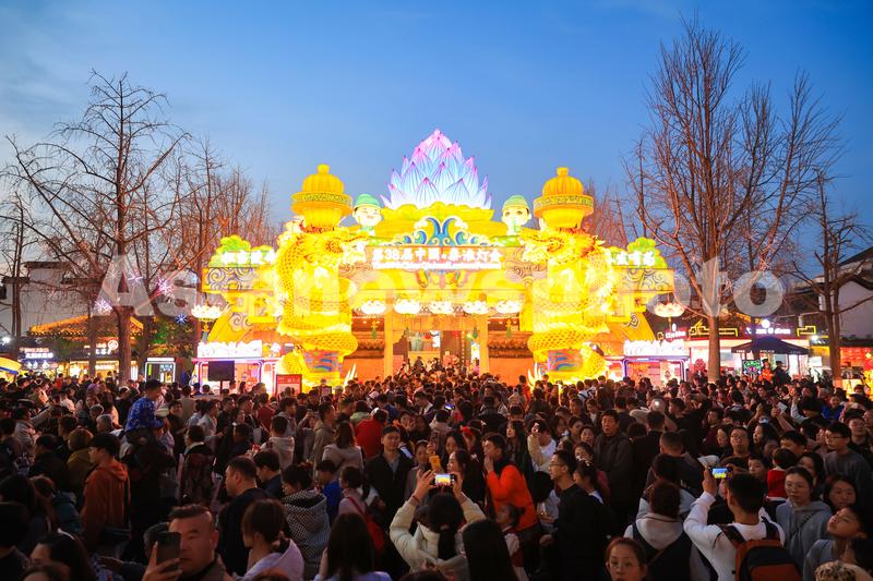 2024年2月14日,春节假期,南京秦淮灯会花灯璀璨,吸引众多市民和游客来到夫子庙景区观灯赏景,乐享假日时光。