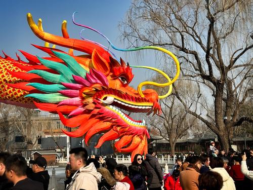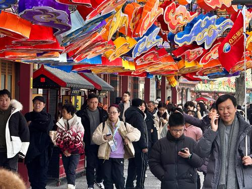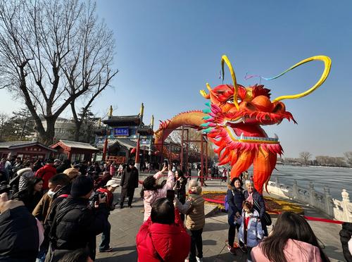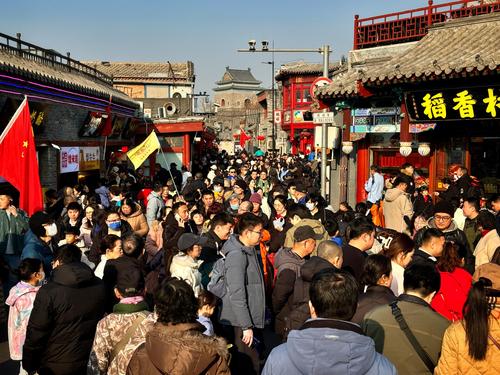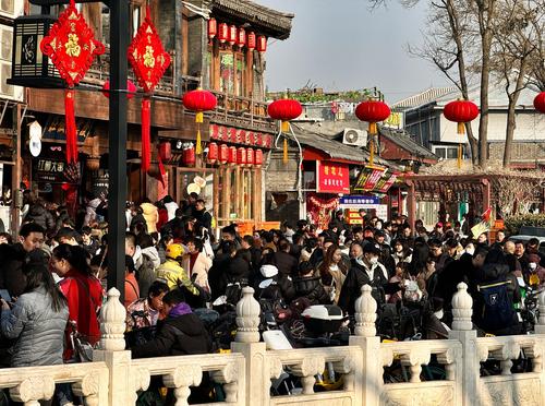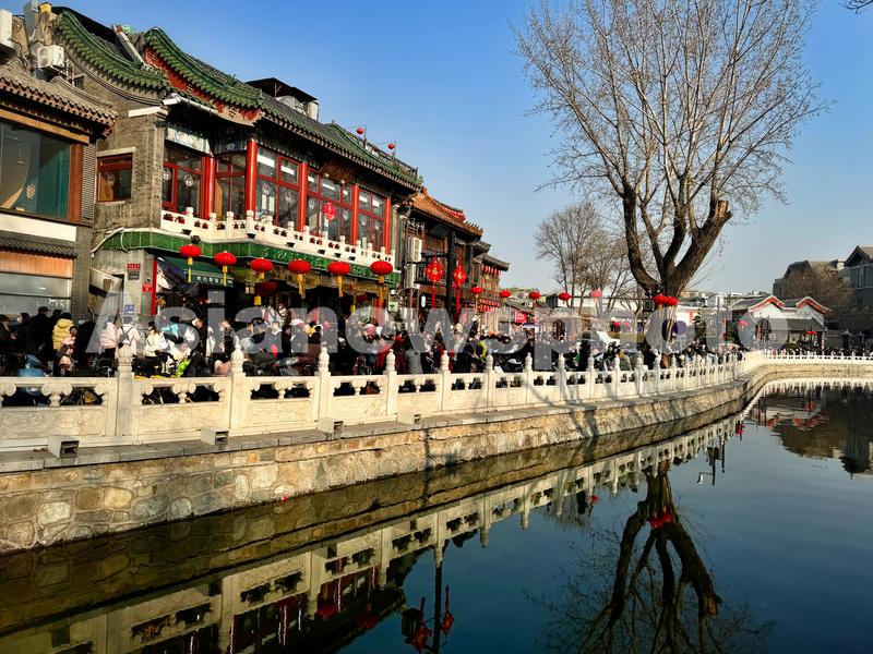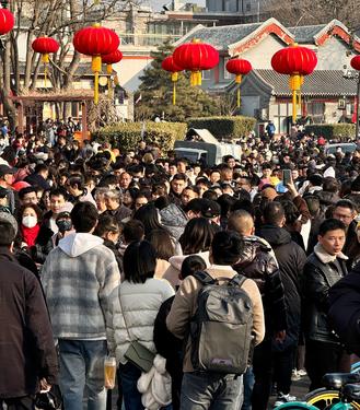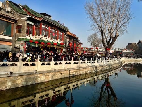 图片说明:2月12日,在什刹海参观游玩的游客摩肩接踵,春节氛围十足。