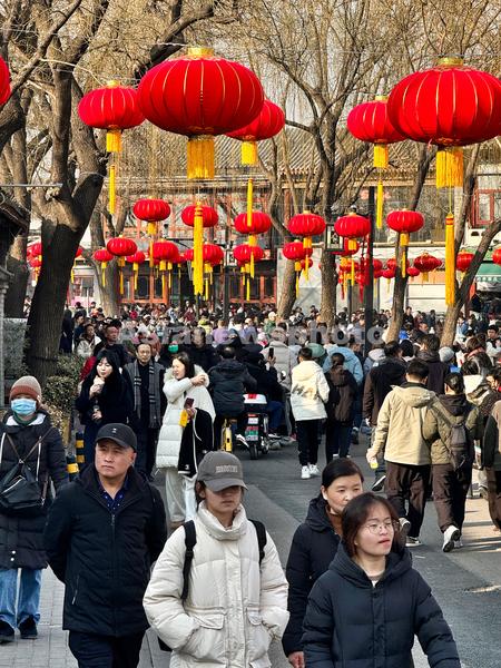 图片说明:2月12日,在什刹海参观游玩的游客摩肩接踵,春节氛围十足。