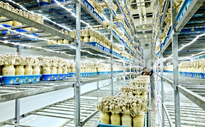 甘肃张掖:鹿茸菇生产忙 查看组图