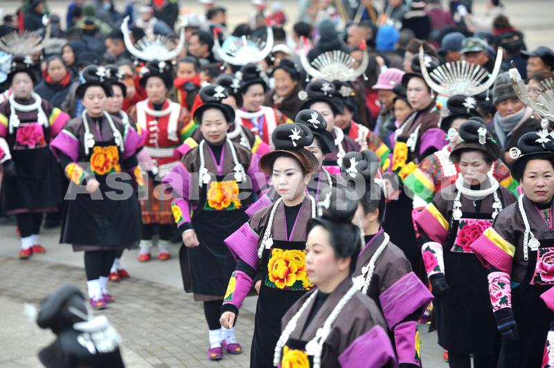 图片说明:2024年2月26日,苗族同胞在贵州省凯里市舟溪镇参加甘囊香芦笙比赛。