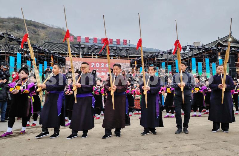 图片说明:2024年2月26日,苗族同胞在贵州省凯里市舟溪镇参加甘囊香芦笙比赛。