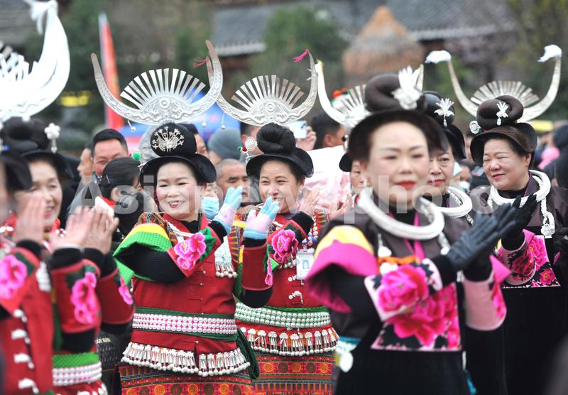 图片说明:2024年2月26日,苗族同胞在贵州省凯里市舟溪镇参加甘囊香芦笙比赛。
